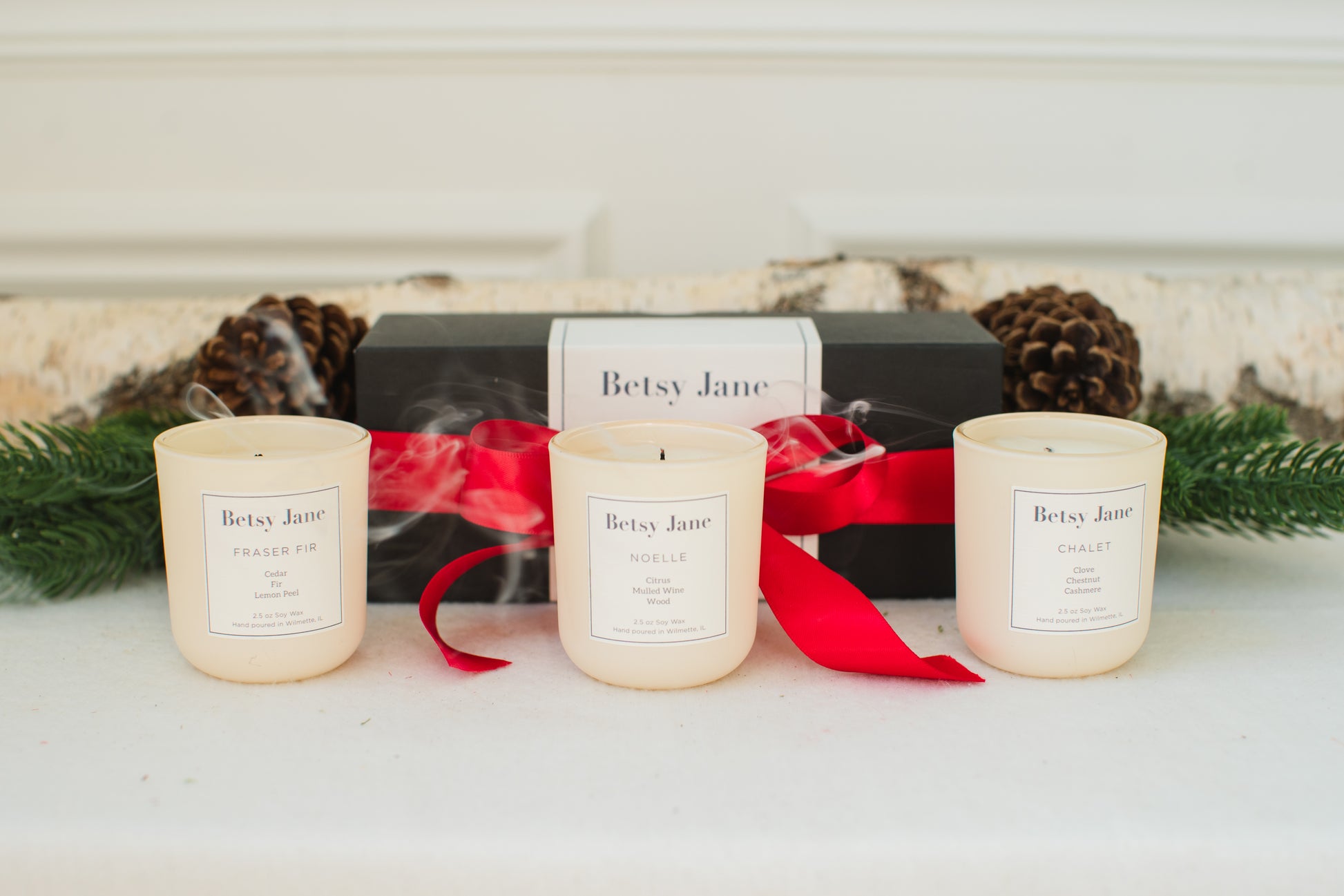 Inspired by classic holiday season nostalgia and curated in a balanced line of aromas across three scent categories (citrus, woody and amber). This gift set includes three 2.5 oz candles from our Holiday Collection, Chalet, Fraser Fir and Noelle, in matte, painted, glass vessels and a luxury gift box. Savor the best of the season’s aromas with this giftset that is gift ready, for yourself or others.