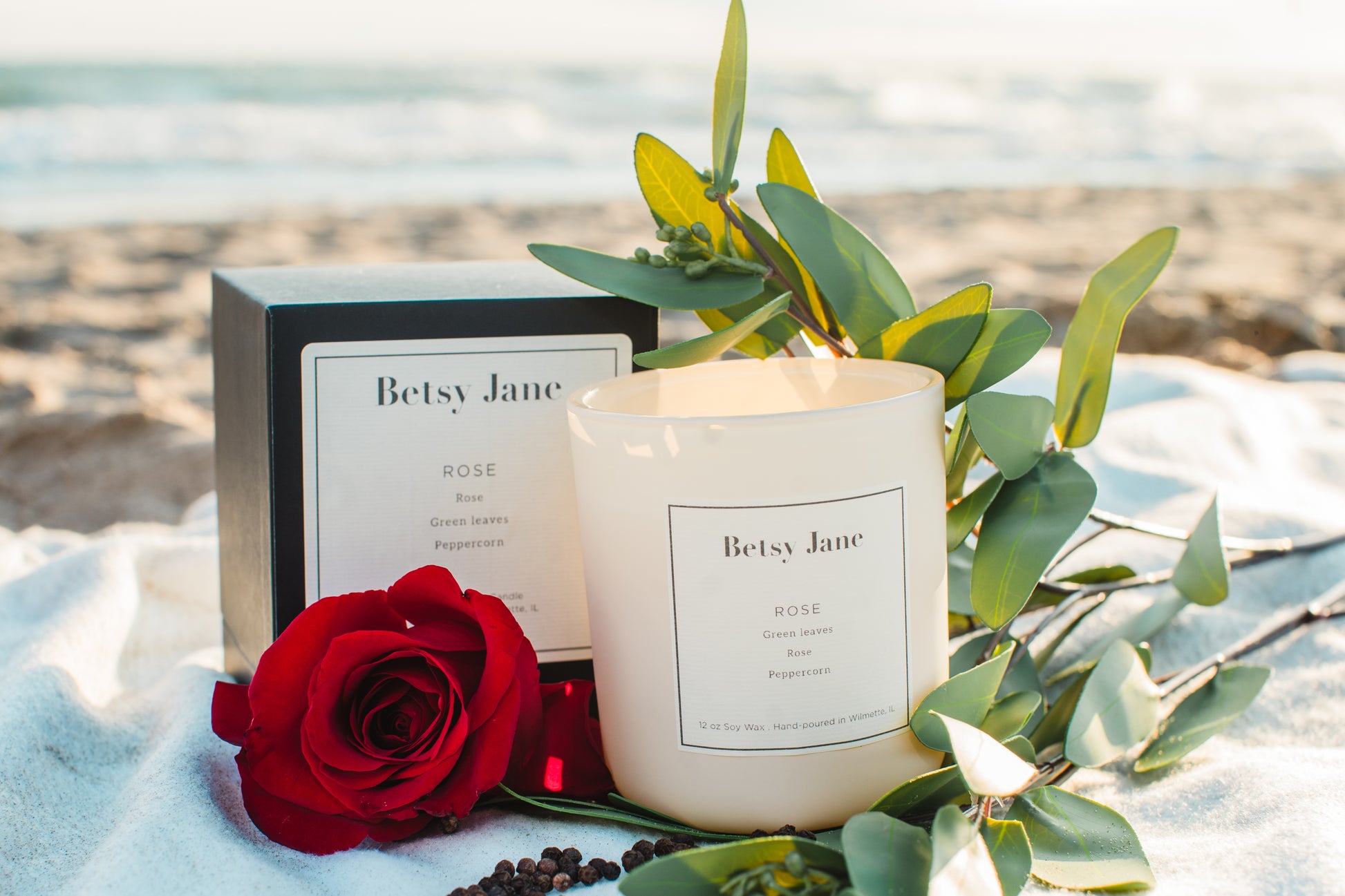 Inspired by a Mother's love, Rose features a modern twist on a classic floral aroma. It smells like green leaves, rose, and peppercorn. It is great for the bathroom, kitchen, or entryway to welcome friends and family into a soothing environment. It is a 12-oz double-wick soy candle in a matte, painted glass vessel and a luxury gift box.